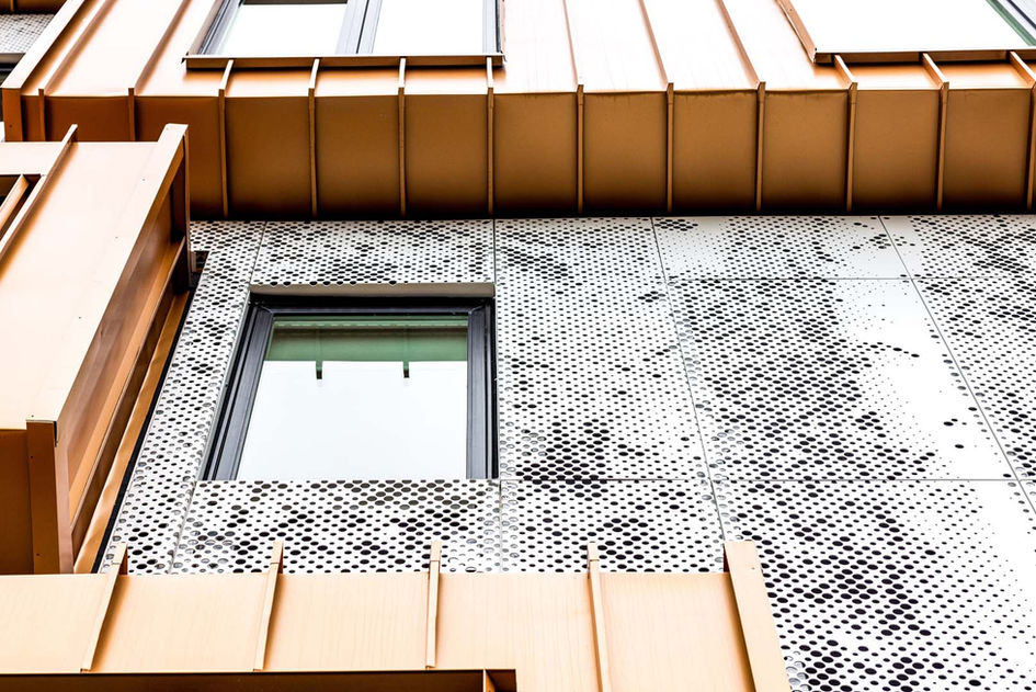 Visitors passing 1717 University Avenue can’t miss it: millions of precision-cut circles dance across a powder-coated, perforated-metal façade. Custom-fabricated for durability and visual impact, this weather-resistant skin is part architectural artwork, part all-season building armor. More than a cladding, it’s a statement in high-function, high-style metal fabrication.